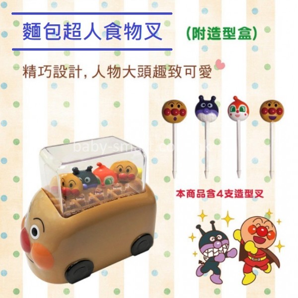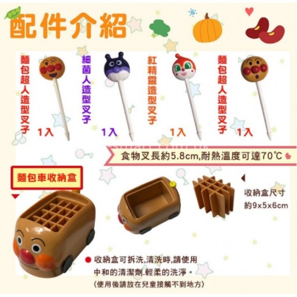 Anpanman 麵包超人 食物叉(4入)附麵包車造型收納盒