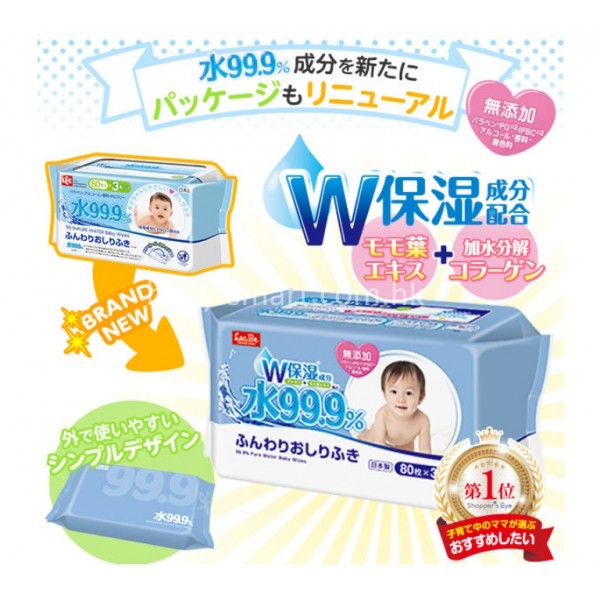 LEC 日本製造之「水 99.9%」系列幼兒即棄濕抹巾,榮獲日本產品專利,以 99.9% 極高純水度,將皮膚刺激性減至最低,溫柔呵護寶寶肌膚。
