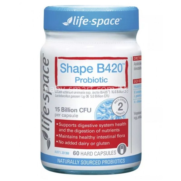 Life Space 塑身B420益生菌膠囊,採用獨特配方由全天然原料精緻而成,低過敏性,不含添加劑和防腐劑。B420是科學調理身體腸道菌落數,有益於全身健康的“減肥”方式。B420可有助於抑制脂肪的吸收,增加排出體外的脂肪量。可以幫助你的身體少吸收食物中的熱量。B420減肥益生菌不單單是塑形纖體,是一種優質,針對性的益生菌配方,其中包含2種有益細菌菌株,經配製可以很健康,促進消化和營養吸收;維持健康的消化菌群;支援健康的腸胃消化系統功能。