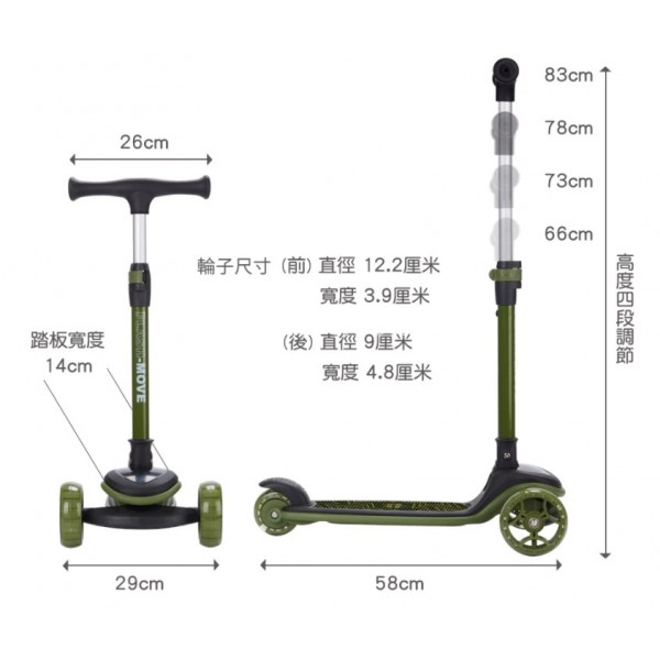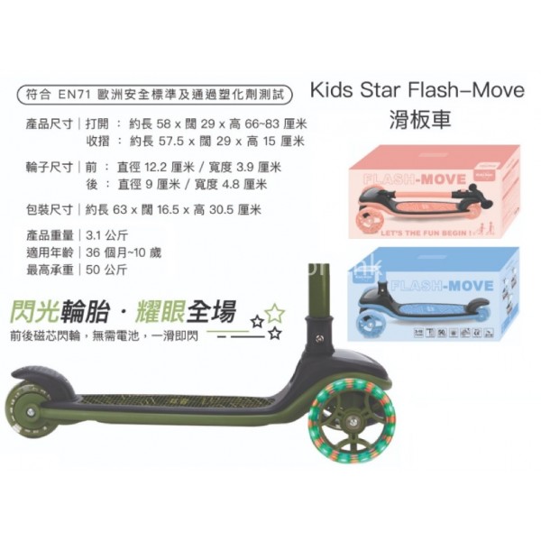 Kids Star Flash-Move 滑板車 -軍綠色 **自取$349 限時優惠**